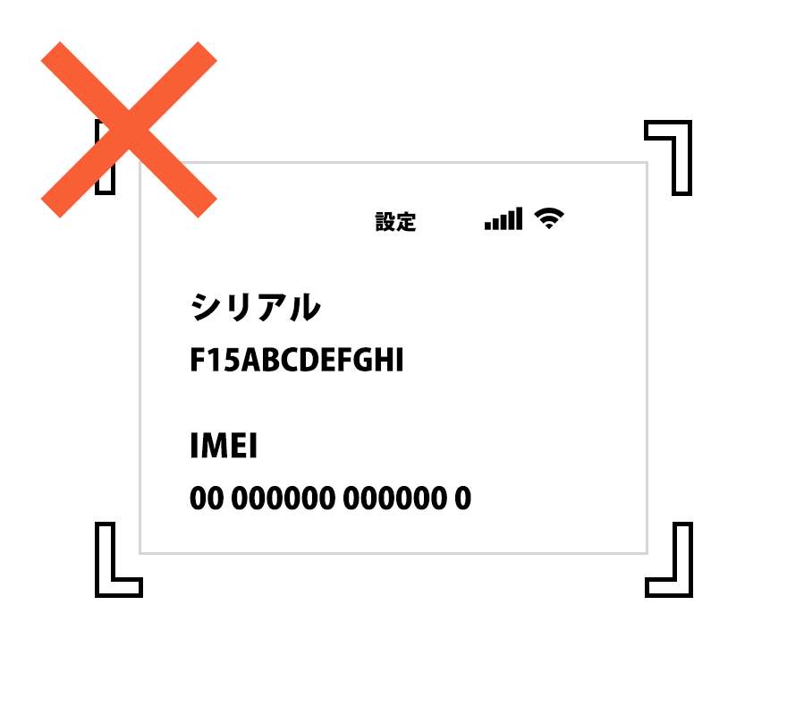 ※背面が特定できない端末は正面写真とは別の角度に変えて撮影してください。